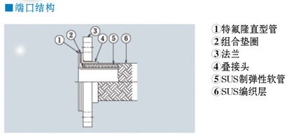 特长: 1、 采用直性软管,内壁平滑,所以不会产生内部液体滞留现象; 2、 接触液体的部分全部为特氟隆,所以耐腐蚀性大大提升; 3、 支撑部可根据需要(SUS弹性软管•膨胀节接头)制作